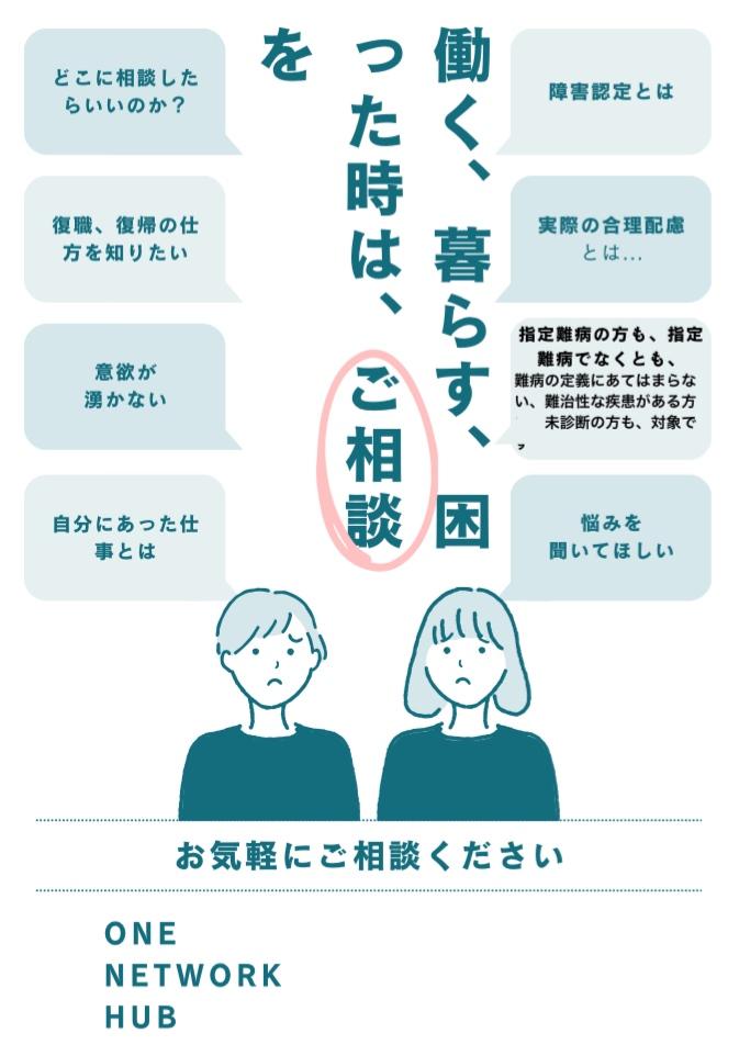 加えて、自分の状態と配慮事項を盛り込んだ書類「疾病・障がい等又状況説明書」の作成については、ONEさんのアドバイスが大変参考になりました。添削と訂正を繰り返しできた書類は就活や就業先での定着に大変強い味方になったと思います。